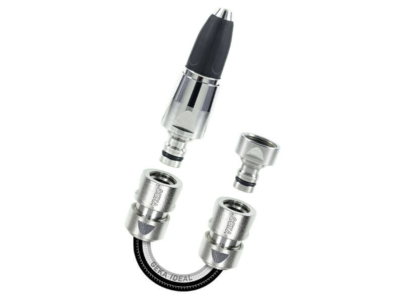 dysza, złącze kranowe 3/4“, złącze do węży GEKA® plus 1/2“ i złącze do węży GEKA® Plus 1/2“z zaworem.