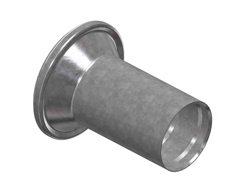 Kielich z króćcem na rury polietylenowe do systemu złączy BAUER typ B51 wykonany ze stali ocynkowanej, z gumową uszczelką z mieszanki NR/SBR (na życzenie EPDM).