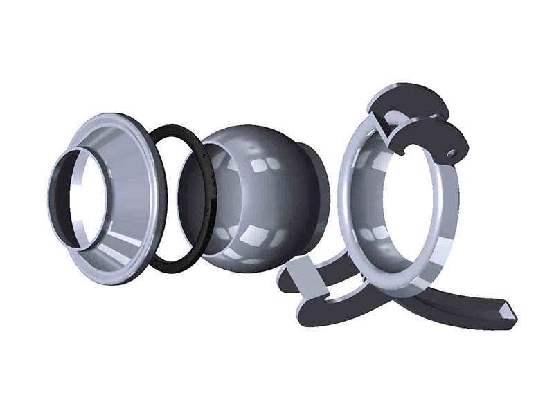 Element stanowi kompletne złącze do przyspawania na rurę, bądź inne elementy instalacji, zarówno część męską jak i żeńską. Posiada dwa zaczepy, oraz dźwignie służącą zaciągnięciu w celu zamknięcia złącza. Jest kompatybilny z oryginalnymi złączami produkcji BAUER.