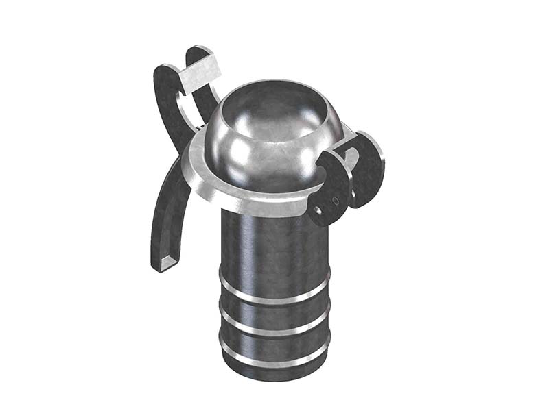 Element z króćcem, służy do montażu wewnątrz węża, przy użyciu oddzielnie zamawianych opasek lub obejm. Wraz z kulistym wtykiem, oraz osobnym kołnierzem z zaczepami, tworzy męską część złącza. Króciec z kulą oraz kołnierz nie są ze sobą połączone na stałe. Kołnierz nakładany od strony króćca wyposażony jest w dwa zaczepy, oraz dźwignie służącą zaciągnięciu w celu zamknięcia złącza. Jest kompatybilny z oryginalnymi złączami produkcji BAUER.