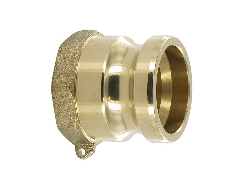 Złącze "Kamlok" męskie typ A z gwintem wewnętrznym wykonane z mosiądzu, z płaską uszczelką wewnątrz gwintu z PU.