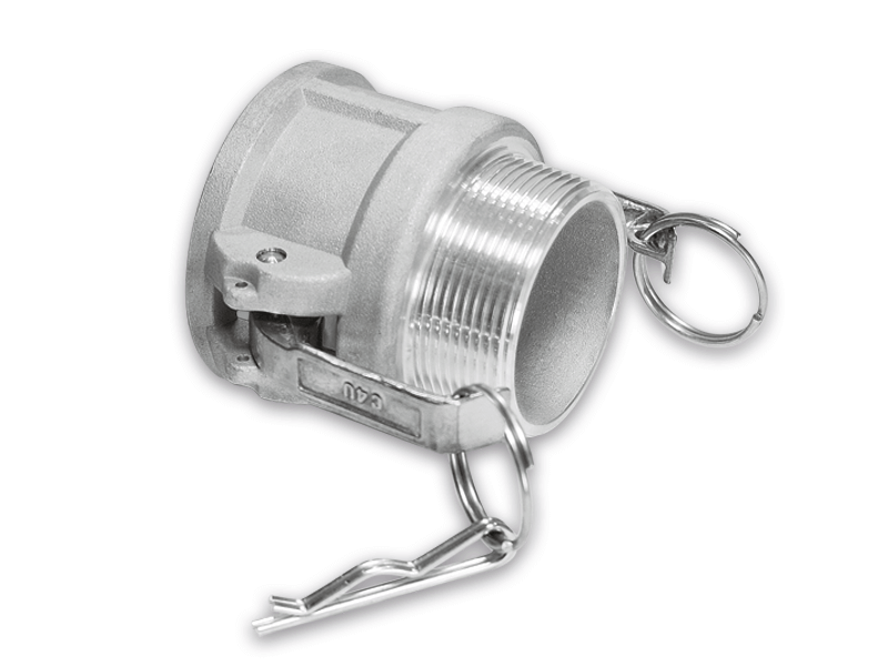 Złącze "Kamlok" żeńskie z gwintem zewnętrznym (męskim) typ B wykonane z aluminium, z czarną uszczelką z NBR.