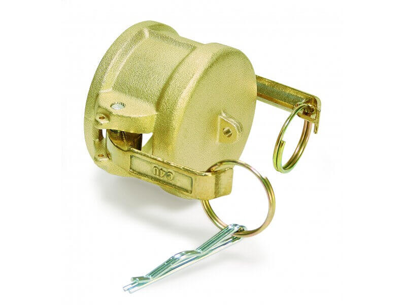 Złącze "Kamlok" żeńskie typ DC zaślepiające (korek) wykonane z mosiądzu, z czarną uszczelką z NBR.