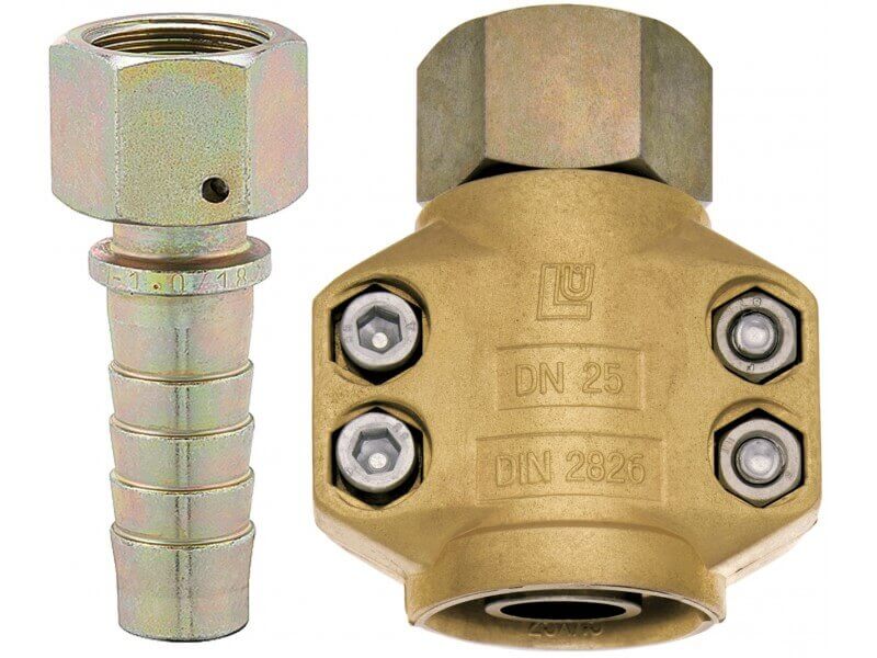Złącza do pary dzięki zastosowaniu odpowiednich materiałów, są dedykowane do pracy z gorącym medium, w postaci pary nasyconej, bądź z gorącą wodą. Praca z takim medium, może być szczególnie niebezpieczna dla operatora, dlatego ważny jest dobór dedykowanych i wytrzymałych narzędzi, które gwarantują bezpieczeństwo obsługi, i dlatego również rozwiązania techniczne stosowane w instalacjach do przesyłu pary, podlegają normalizacji. Maksymalna temperatura pracy dla tych złączy wynosi 210ºC. System oparty jest na dwuelementowych końcówkach składających się najczęściej z końcówki z króćcem i specjalnym kołnierzem pod obejmę skorupową z jednej strony i gwintem z drugiej. W tym przypadku zastosowano gwint wewnętrzny z uszczelką, a zestaw uzupełnia obejma skorupowa, zbudowana z dwóch części zakładanych na wąż i skręcanych przeciwstawnie czterema śrubami. Obejma i złącze jest wielokrotnego użytku, tzn można je zdemontować i ponownie zamontować na nowym wężu.