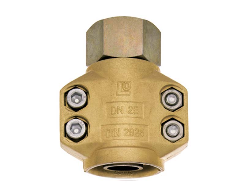 Kompletne złącze do pary z króćcem do węża i gwintem wewnętrznym wykonanym ze stali ocynkowanej pasywowanej chromem, obejmą skorupową z mosiądzu oraz uszczelnineiem z Frenzelitu Novapress Multii II.
