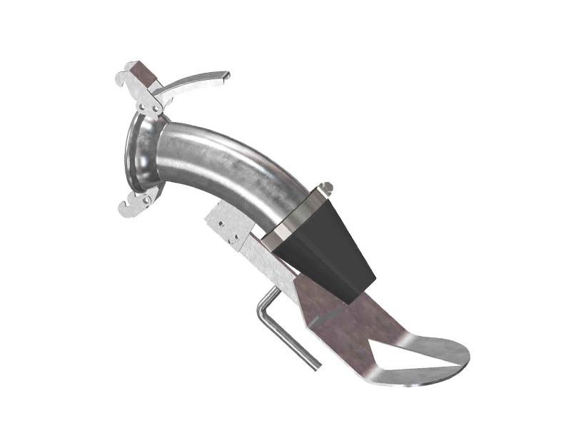 Element przeznaczony do montażu na przewodach, urządzeniach, cysternach wyposażonych w męskie przyłącze typu FERRARI. Kolano ze stożkową końcówką jest wykorzystywane jako końcówka przy zrzucie z instalacji, pojemników, cystern czy beczkowozów mediów płynnych i sypkich, takich jak woda przy nawadnianiu, nawozy, gnojówka, czy tez piasek, nasiona, żwir itp. Stożkowa końcówka wykonana z gumy zmniejsza uszkodzenia zrzucanych materiałów sypkich, takich jak nasiona, a specjalnie wyprofilowany dyfuzor zapewnia optymalny rozrzut. Zarówno gumowy stożek, jak i dyfuzor są dostępne osobno w razie zurzycia lub awarii.