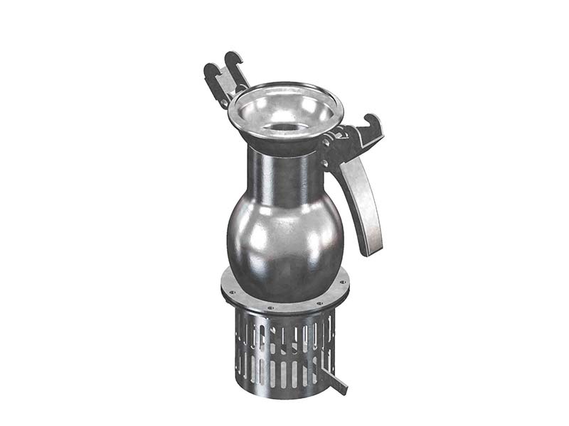 Element przeznaczony do montażu na instalacjach, urządzeniach i przewodach wyposażonych w złącza męskie FERRARI, które zanurzane są w zbiornikach, odstojnikach, cysternach czy szambach w celu pobrania płynnej zawartości. Zamontowany kosz przeciwdziała dostaniu się do instalacji większych elementów, jak gałęzie, kamienie czy inne elementy, które mogą uszkodzić elementy instalacji, takie jak np. pompa. Jednocześnie przewód wyposażony w taki kosz, jest odpowiednio dociążony, aby opaść na dno zbiornika z którego pobierana jest ciecz. Kosz posiada dolny zawór zwrotny, zapobiegający cofaniu się pompowanej substancji, podczas przerw w pracy, dzięki czemu po ponownym uruchomieniu pompa nie musi zasysać ponownie pustej zawartości przewodu. Dodatkowym atutem elementu jest możliwość demontażu i wymiany kosza w razie uszkodzenia lub zużycia.