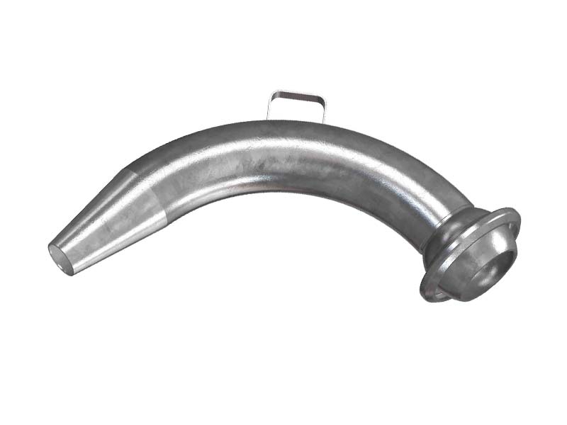 Element przeznaczony do montażu na przewodach, urządzeniach, cysternach wyposażonych w żeńskie przyłącze typu ANFOR. Kolano ze stożkową końcówką jest wykorzystywane jako końcówka przy zrzucie z instalacji, pojemników, cystern czy beczkowozów mediów płynnych i sypkich, takich jak woda przy nawadnianiu, nawozy, gnojówka, czy tez piasek, nasiona, żwir itp. Końcówkę wyposażono w uchwyt, który ułatwia operowanie końcówką podczas pracy.