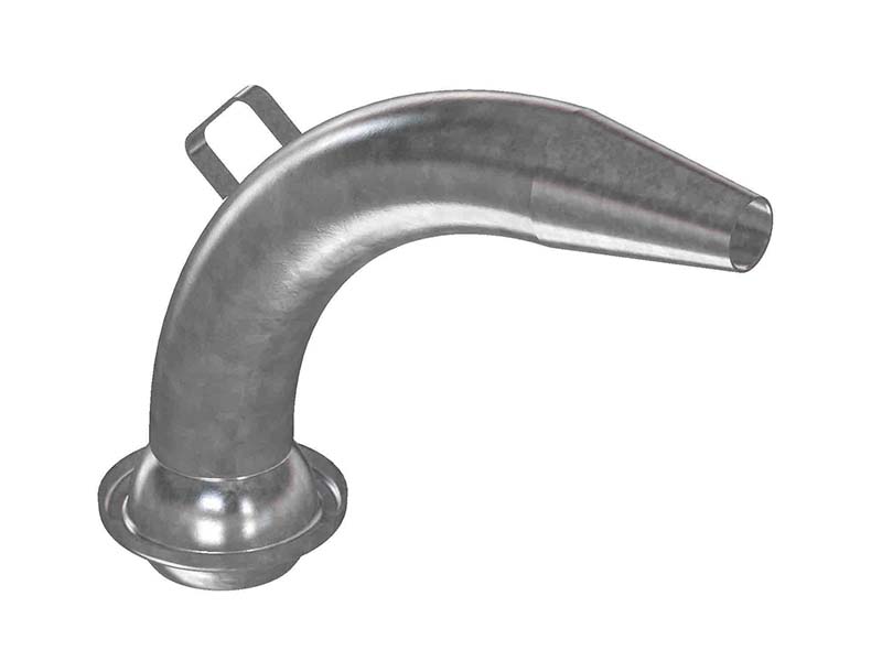 Element przeznaczony do montażu na przewodach, urządzeniach, cysternach wyposażonych w żeńskie przyłącze typu FERRARI. Kolano ze stożkową końcówką jest wykorzystywane jako końcówka przy zrzucie z instalacji, pojemników, cystern czy beczkowozów mediów płynnych i sypkich, takich jak woda przy nawadnianiu, nawozy, gnojówka, czy tez piasek, nasiona, żwir itp. Końcówkę wyposażono w uchwyt, który ułatwia operowanie końcówką podczas pracy.