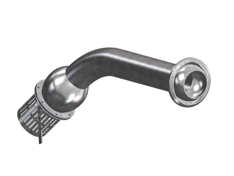 Element przeznaczony do montażu na instalacjach, urządzeniach i przewodach wyposażonych w złącza żeńskie ANFOR, które zanurzane są w zbiornikach, odstojnikach, cysternach czy szambach w celu pobrania płynnej zawartości. Zamontowany kosz przeciwdziała dostaniu się do instalacji większych elementów, jak gałęzie, kamienie czy inne elementy, które mogą uszkodzić elementy instalacji, takie jak np. pompa. Jednocześnie przewód wyposażony w taki kosz, jest odpowiednio dociążony, aby opaść na dno zbiornika z którego pobierana jest ciecz. Dodatkowym atutem elementu jest możliwość demontażu i wymiany kosza w razie uszkodzenia lub zużycia. Wygięcie i długa rura zwiększa możliwości instalacyjne złącza, pozwalając na instalacje w miejscach niedostępnych dla złączy prostych.