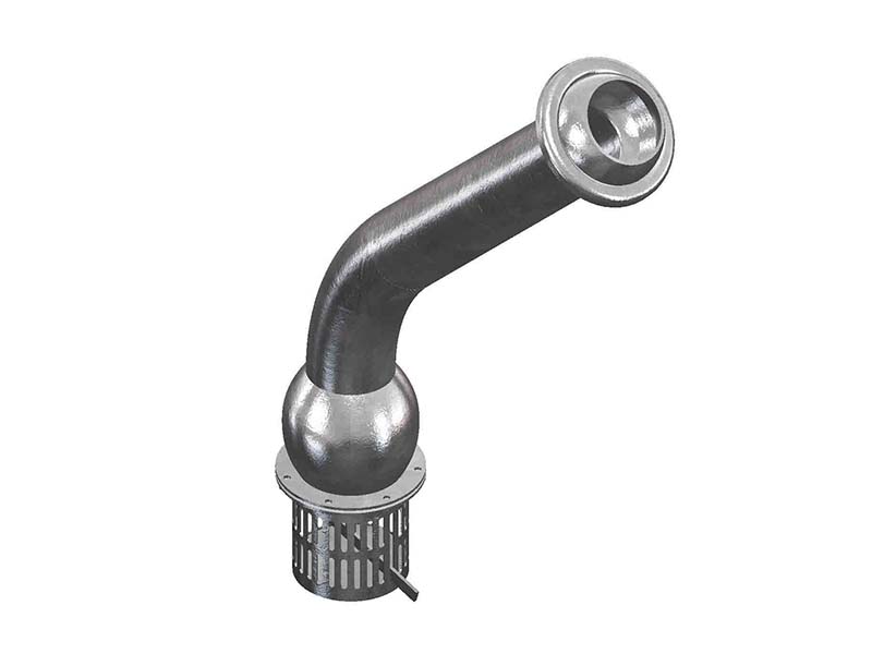Element przeznaczony do montażu na instalacjach, urządzeniach i przewodach wyposażonych w złącza żeńskie FERRARI, które zanurzane są w zbiornikach, odstojnikach, cysternach czy szambach w celu pobrania płynnej zawartości. Zamontowany kosz przeciwdziała dostaniu się do instalacji większych elementów, jak gałęzie, kamienie czy inne elementy, które mogą uszkodzić elementy instalacji, takie jak np. pompa. Jednocześnie przewód wyposażony w taki kosz, jest odpowiednio dociążony, aby opaść na dno zbiornika z którego pobierana jest ciecz. Dodatkowym atutem elementu jest możliwość demontażu i wymiany kosza w razie uszkodzenia lub zużycia. Wygięcie i długa rura zwiększa możliwości instalacyjne złącza, pozwalając na instalacje w miejscach niedostępnych dla złączy prostych.