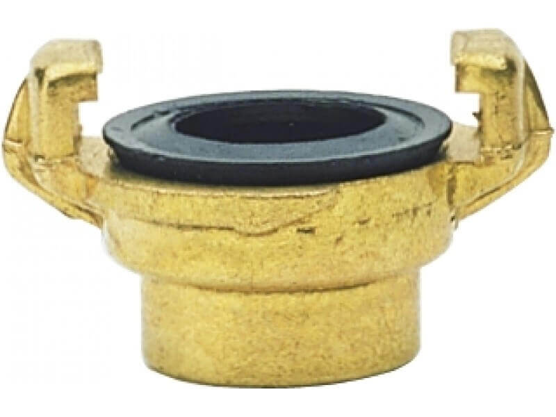 Złącze kłowe Geka z gwintem wewnętrznym zbudowane jest z mosiądzu, z czarną uszczelką z NBR.