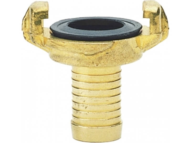 Złącze kłowe Geka z króćcem na wąż zbudowane jest z mosiądzu, z czarną uszczelką z NBR.
