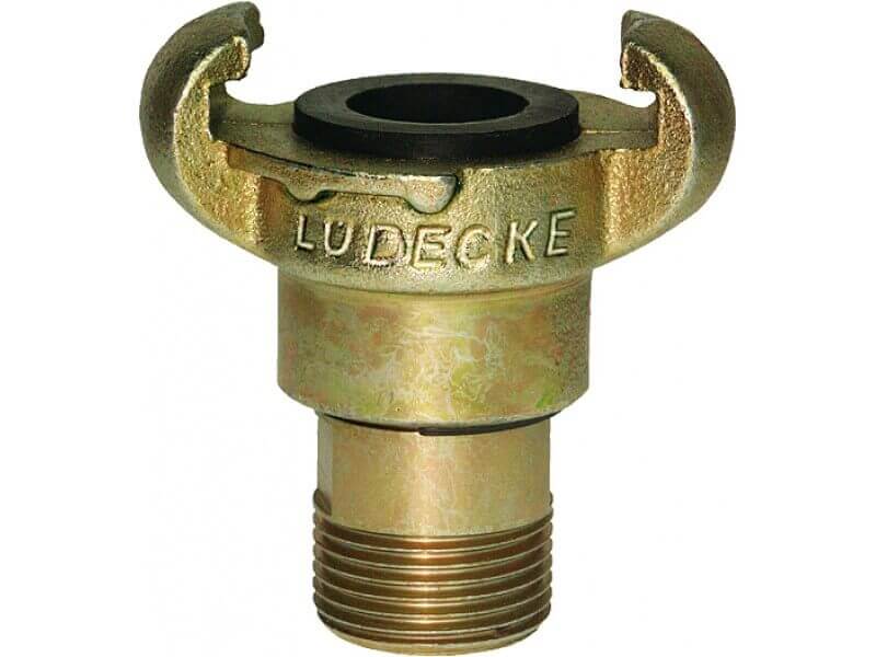Obrotowe złącza kłowe LUDECKE przeznaczone są do zastosowania przy zasilaniu sprężonym powietrzem budowlanych i górniczych narzędzi pneumatycznych. Przykładami obsługiwanych urządzeń są młoty pneumatyczne, wiertarki i wiertnice, ubijaki, zagęszczarki czy też zasilające te narzędzia sprężarki. Złącza świetnie sprawdzają się w budownictwie drogowym, budownictwie ogólnym, zwłaszcza przy rozbiórkach, w górnictwie czy przemyśle ciężkim. Ich zaletą, jest użyty materiał, który dzięki oryginalnej i opatentowanej technologii wytwarzania, charakteryzuje się większą wytrzymałością na rozciąganie, zginanie i naprężenia produktu, w stosunku do złączy wytwarzanych na Dalekim Wschodzie. Dzięki temu, złącza te charakteryzują się dużo większą żywotnością, co przekłada się na dużo mniejsze ryzyko uszkodzenia drogich urządzeń specjalistycznych, czy też narażenie zdrowia operatorów. Żółta pasywacja chromem, pozbawiona jest szkodliwego dla środowiska i zdrowia chromu sześciowartościowego. Dzięki zastosowaniu specjalnej konstrukcji, złącza posiadają możliwość obracania się o 360°, dzięki czemu nie dochodzi do niebezpiecznego zjawiska skręcania się przewodów podczas pracy. Zabezpiecza to przed uszkodzeniem zarówno przewodów, jak i urządzeń, które mogą nagle utracić zasilanie medium.