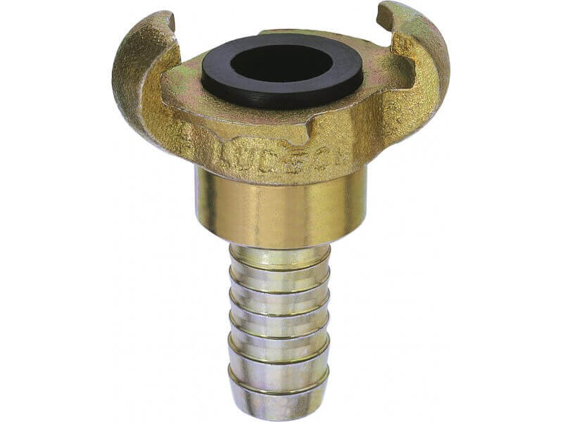 Złącze kłowe z króćcem do węża, wykonane z żeliwa ciągliwego, ocynkowanego, z elementami ze stali ocynkowanej z uszczelnieniem z Perbunanu (NBR).