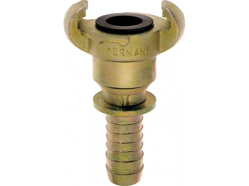 Złącze kłowe z króćcem do węża, wykonane z żeliwa ciągliwego, ocynkowanego, z elementami ze stali ocynkowanej z uszczelnieniem z Perbunanu (NBR).