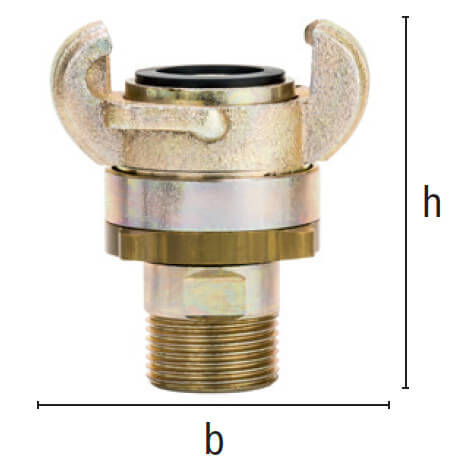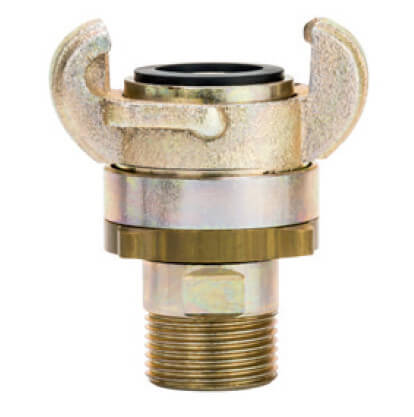 Złącze kłowe skręcane z Gwintem Zewnętrznym, wykonane z żeliwa ciągliwego, ocynkowanego, z elementami ze stali ocynkowanej i z mosiądzu z uszczelnieniem z Perbunanu (NBR).