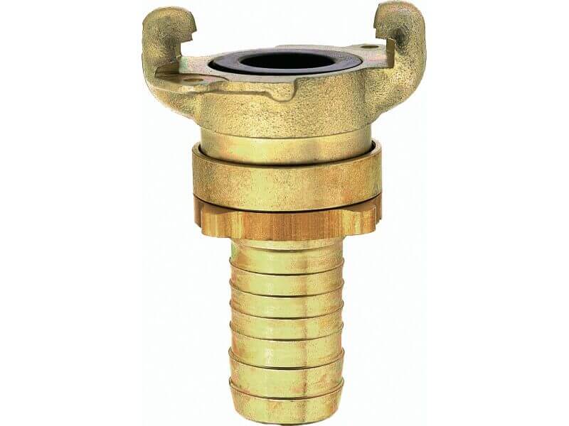 Złącze kłowe skręcane z króćcem do węża, wykonane ze stali hartowanej, ocynkowanego, z elementami zez mosiądzu z uszczelnieniem z Perbunanu (NBR).