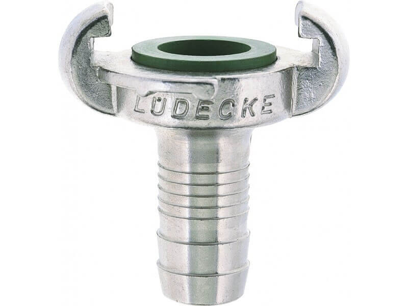 Złącze kłowe z króćcem do węża, wykonane ze stali szlachetnej z uszczelnieniem z Vitonu (FKM).