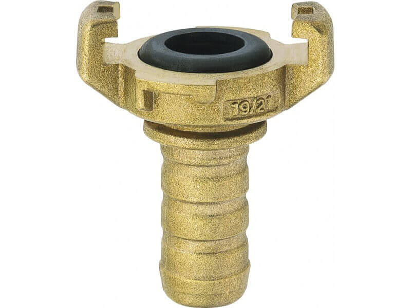 Złącze kłowe z króćcem do węża, wykonane z mosiądzu (MS58) z uszczelnieniem z Prebunanu (NBR).