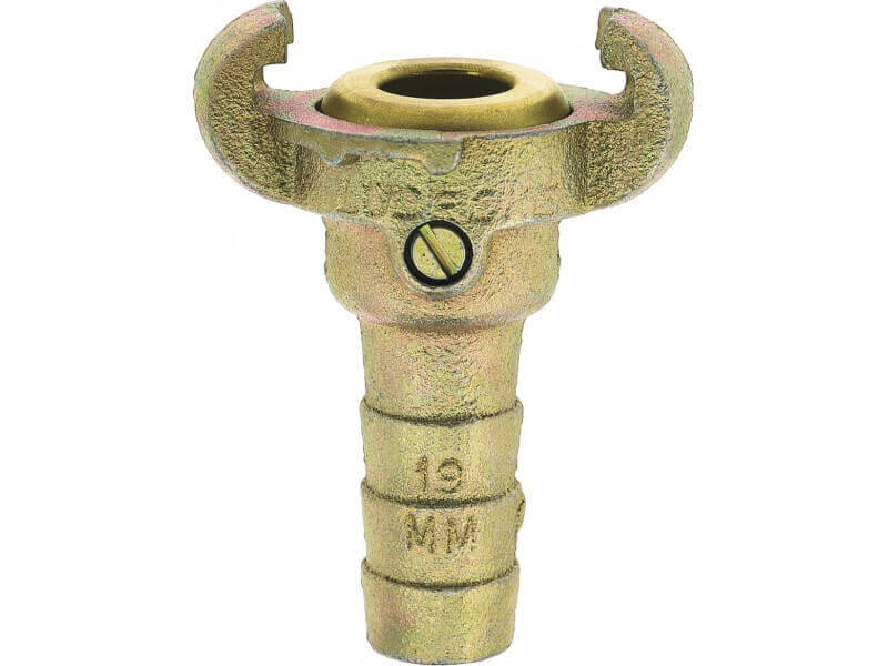 Złącze kłowe z króćcem do węża, wykonane z żeliwa ciągliwego, ocynkowanego z uszczelnieniem z Mosiądzu.