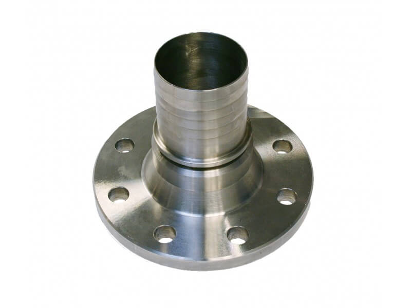 Złącze kołnierzowe z króćcem na wąż wykonane ze stali ocynkowanej.