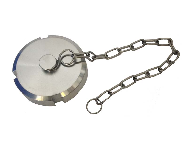 Żeńska nakrętka zaślepiająca do złączy mleczarskich z łańcuszkiem, skręcanych, typ DIN 11851, wykonane ze Stali Szlachetnej.