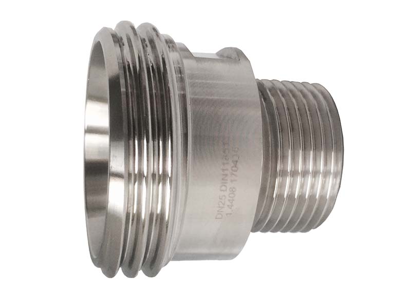 Złącze mleczarskie, skręcane, typ DIN 11851 męskie z gwintem zewnętrznym BSPP, wykonane ze Stali Szlachetnej bez uszczelki.