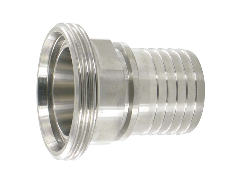 Męskie złącze higieniczne z karbowanym króćcem do węża przeznaczone jest do montażu wewnątrz węży. Aby zapobiec wypadaniu złącza podczas pracy, stosuje się np. tuleje zaciskowe, lub obejmy skorupowe. Prawidłowy montaż elementu umożliwia pierścień, na którym opierają się specjalnie wyprofilowane zaczepy wewnątrz tulei lub obejmy skorupowej.
