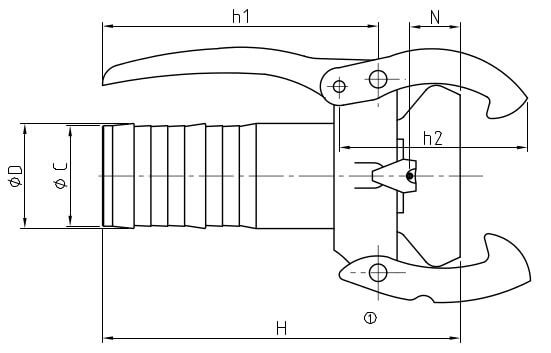 | nazwa | rozmiar | Ø wewn. węża | ciśnienie robocze {bar} | c [mm] | H [mm] | h1 [mm] | h2 [mm] | N [mm] | nr artykułu stal ocynkowana |