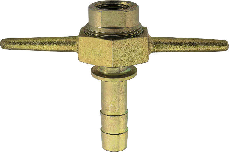 Złącza z króćcem do węża ze stali ocynkowanej, z nakrętką z gwintem wewnętrznym z żeliwa ciągliwego, odlewanego.