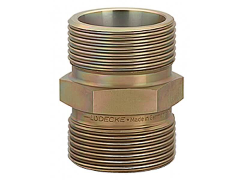 Nypel/Redukcja z obustronnym gwintem zewnętrznym przeznaczone są do stosowania ze złącza wg DIN 20 033 LUDECKE. Złącza te przeznaczone są do zastosowania przy zasilaniu sprężonym powietrzem, lub wodą specjalistycznych narzędzi. Przykładami obsługiwanych urządzeń są m. in. młoty pneumatyczne, wiertarki i wiertnice, ubijaki, zagęszczarki czy też zasilające te narzędzia sprężarki. Złącza świetnie sprawdzają się w budownictwie drogowym, budownictwie ogólnym, zwłaszcza przy rozbiórkach, w górnictwie czy w wiertnictwie. Ich zaletą, jest użyty materiał, który dzięki oryginalnej i opatentowanej technologii wytwarzania, charakteryzuje się większą wytrzymałością na rozciąganie, zginanie i naprężenia produktu, w stosunku do złączy wytwarzanych na Dalekim Wschodzie. Dzięki temu, złącza te charakteryzują się dużo większą żywotnością, co przekłada się na dużo mniejsze ryzyko uszkodzenia drogich urządzeń specjalistycznych, czy też narażenie zdrowia operatorów. Żółta pasywacja chromem, pozbawiona jest szkodliwego dla środowiska i zdrowia chromu sześciowartościowego.