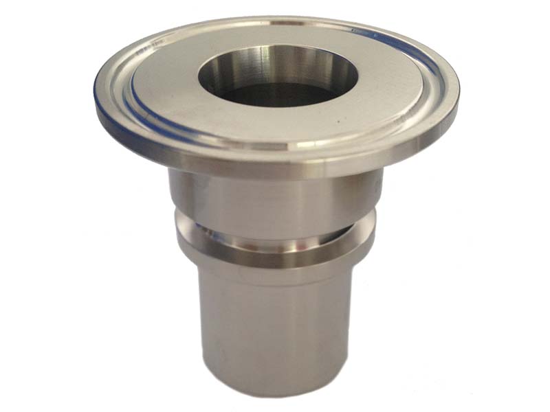 Złącze Tri Clamp zgpdne z DIN 32676, z gładkim króćcem do węża, wykonane ze stali szlachetnej.
