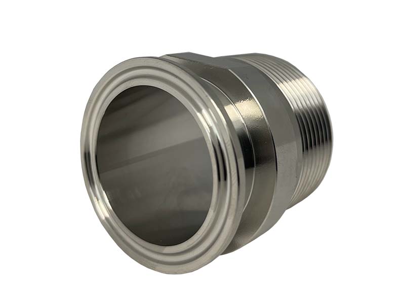 Złącze Tri Clamp zgodne z DIN 32676, z gwintem zewnętrznym, wykonane ze stali szlachetnej