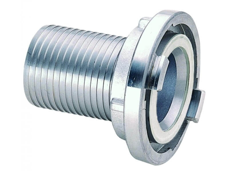 Złącze "Storz" (Strażackie) z króćcem do węży wykonany z aluminium, z białą uszczelką z NBR.