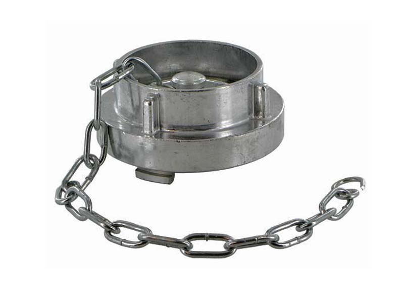 Zaślepiające złącze "Storz" (Strażackie), korek z łańcuszkiem wykonane z aluminium odlewanego, uszczelką z NBR.