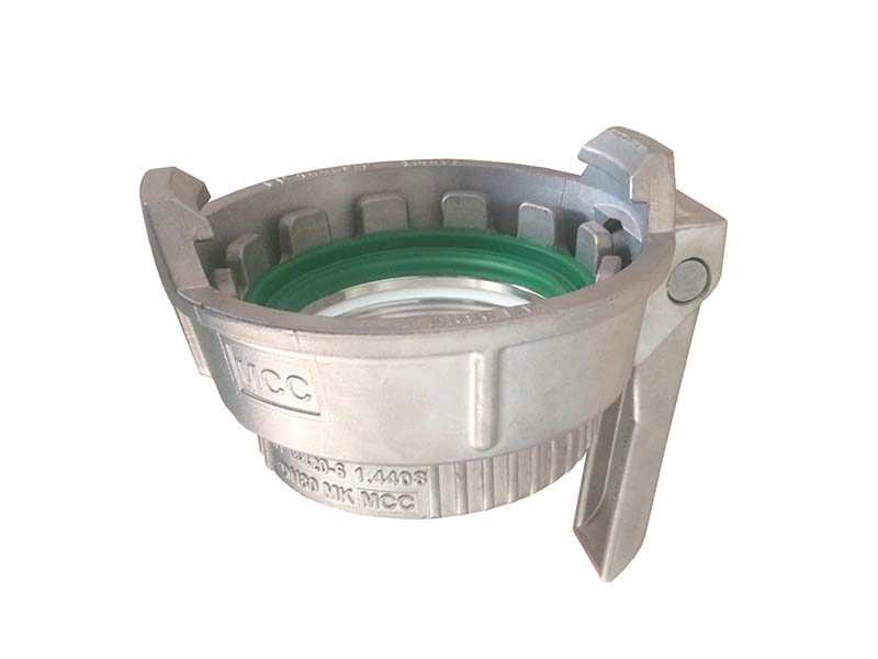 Złącze w systemie "TW" (eurozłącze) typ MK z gwintem wewnętrznym, wykonane ze stali szlachetnej pokryty PFA, z uszczelnieniami z CSM.