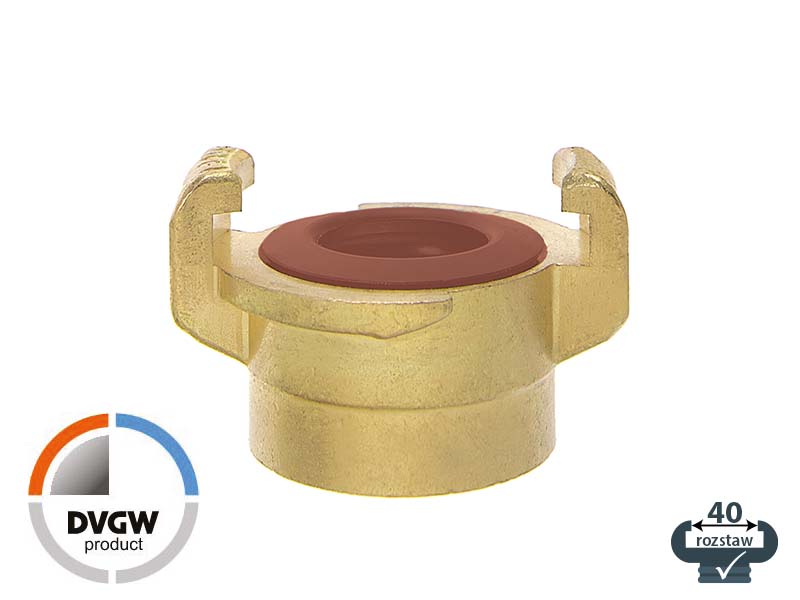 Złącze kłowe typu GEKA z gwintem wewnętrznym wykonane z mosiądzu i uszczelnieniem z NBR.