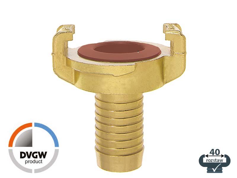 Złącze kłowe typu GEKA z króćcem do węża wykonane z mosiądzu i uszczelnieniem z NBR.