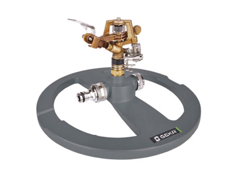 Automatyczny zraszacz kołowy wykonany ze mosiądzu z elementami ze stali szlachetnej.