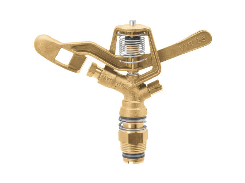 Automatyczny zraszacz V35 kompatybilny z urządzeniami KARASTO, stosowany jest przy nawadnianiu imitującym opady deszczu, przy uprawie roślin ozdobnych i owocowych, krzewów, drzew i niższych roślin uprawnych np. w sadownictwie. Nadaje się do pracy również z niższym ciśnieniem, występującym w sieci wodociągowej (2-6 bar), dzięki czemu może być również stosowany w rozwiązaniach hobbystycznych, takich jak przydomowe ogródki, czy działki rekreacyjne. Znajdzie również zastosowanie przy utrzymaniu wymagających roślin nasadzonych w parkach, ogrodach, zarówno publicznych, miejskich, czy komercyjnych przy hotelach, restauracjach etc..