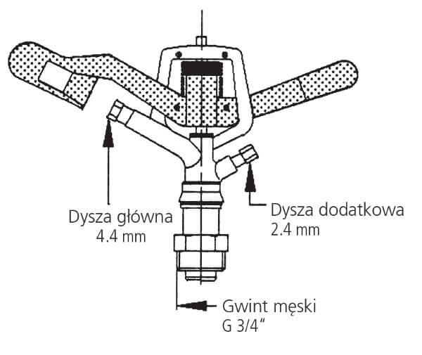 Szczegółowe parametry możliwości zraszacza kołowego V35.