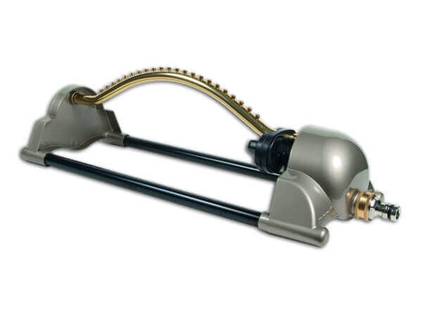 Trwały zraszacz prostokątny. Mosiężne dysze. Regulowana szerokość nawadniania. Nawadniania powierzchnia 16m x 12m (ok. 190m²).